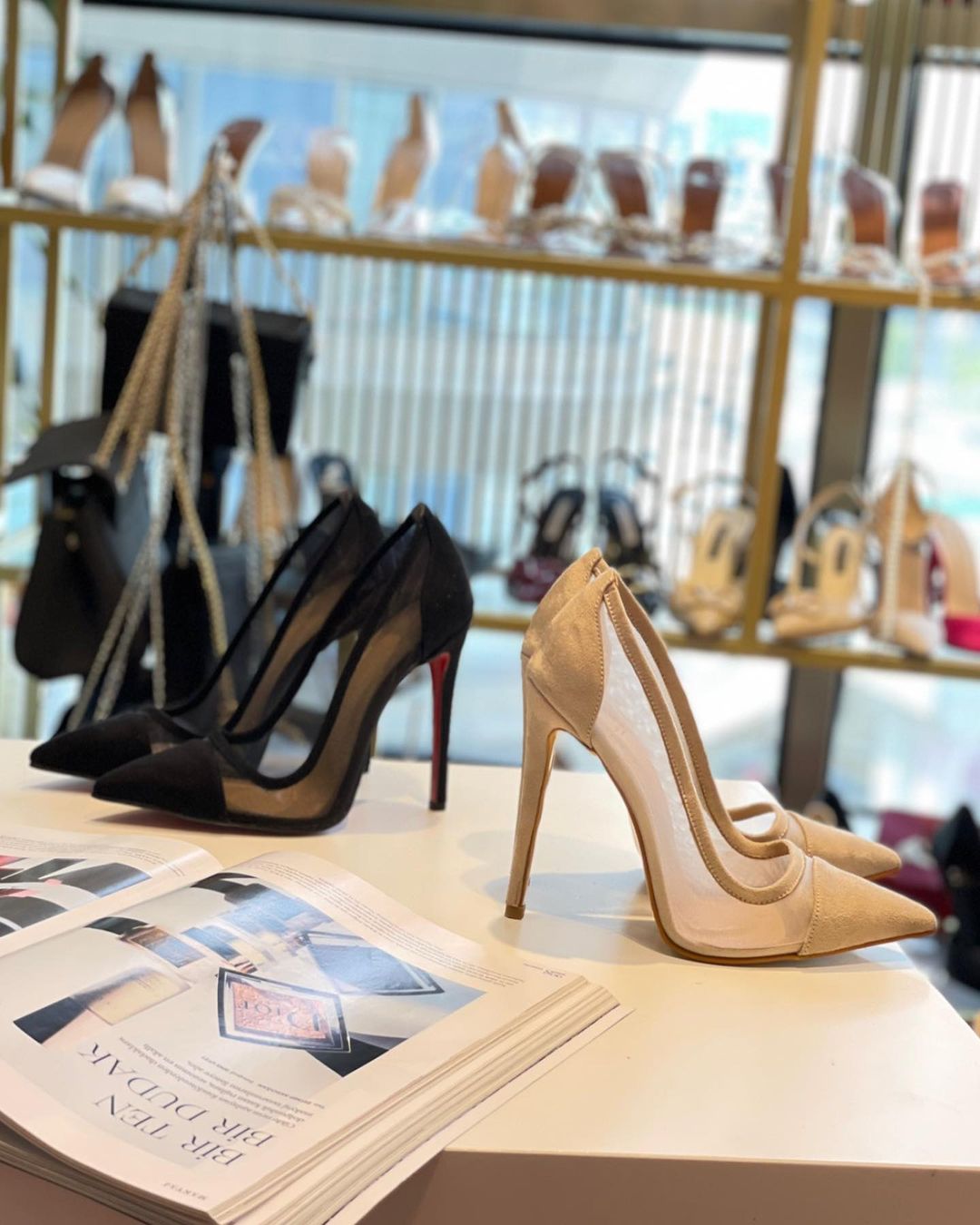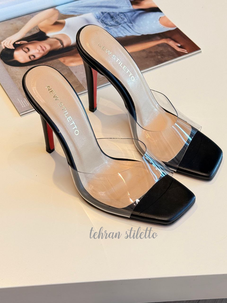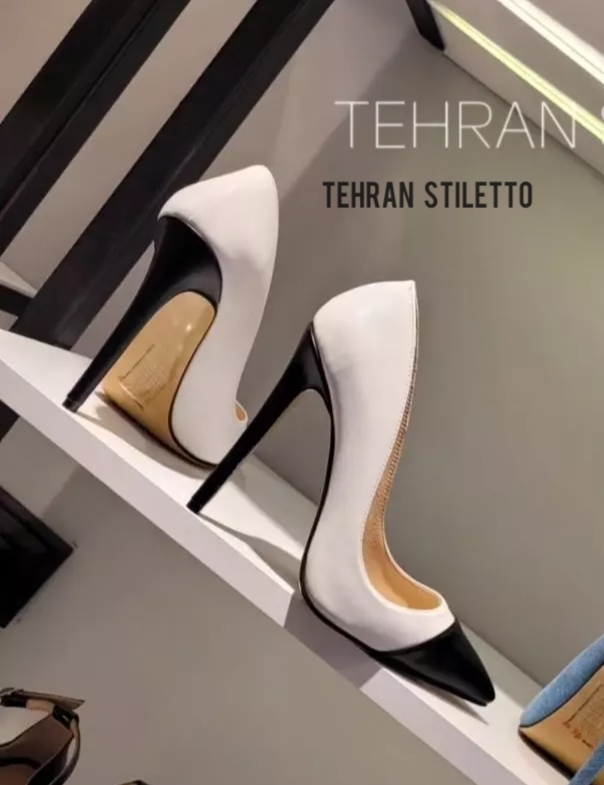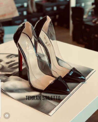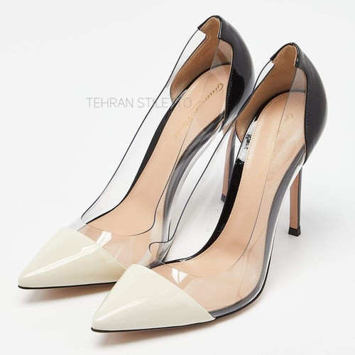 استلتو مجلسی زنانه شیشه ای پاشنه دار سفید مشکی ورنی