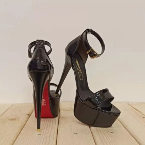 تکبند مجلسی زنانه لژدار پاشنه ۱۶ سانت مشکی ورنی