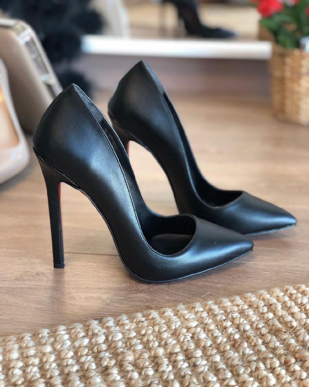 کفش پاشنه بلند مجلسی زنانه نوک تیز مشکی چرم