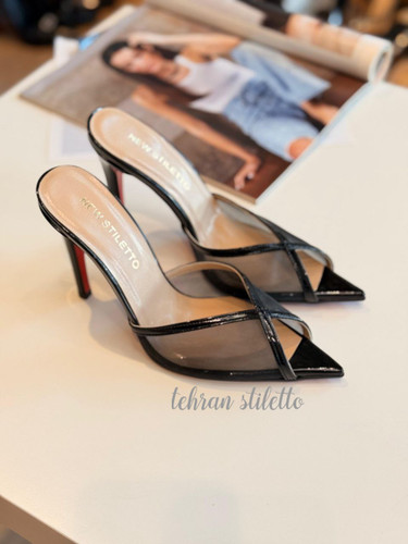استلتو‌ مجلسی زنانه توری پاشنه دار نوک تیز مشکی سوئیت