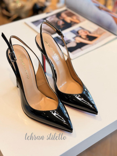 کفش مجلسی زنانه پشت بنددار پاشنه بلند نوک تیز مشکی ورنی