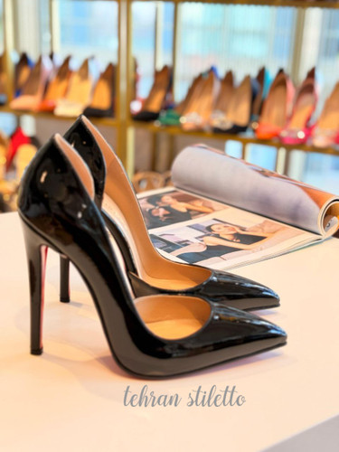 استلتو مجلسی زنانه بغل دالبر پاشنه بلند نوک تیز مشکی ورنی