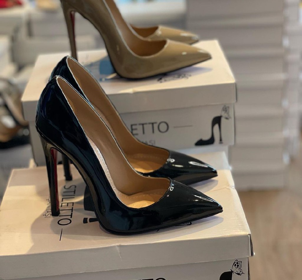 استلتو مجلسی زنانه کلاسیک پاشنه دار نوک تیز مشکی ورنی