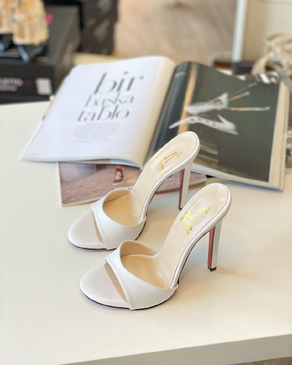 صندل مجلسی زنانه کلاسیک پاشنه بلند سفید چرم