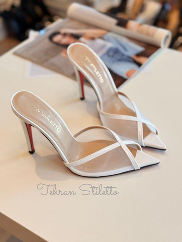 استلتو مجلسی زنانه شیشه ای پاشنه دار سفید ورنی