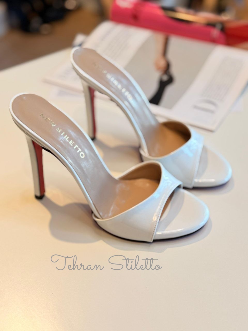 صندل مجلسی کلاسیک پاشنه ۱۰,۷,۵ سانت سفید ورنی