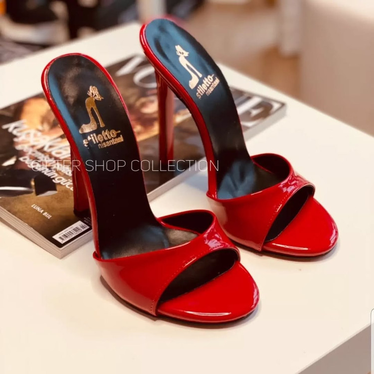 صندل مجلسی کلاسیک پاشنه بلند قرمز ورنی