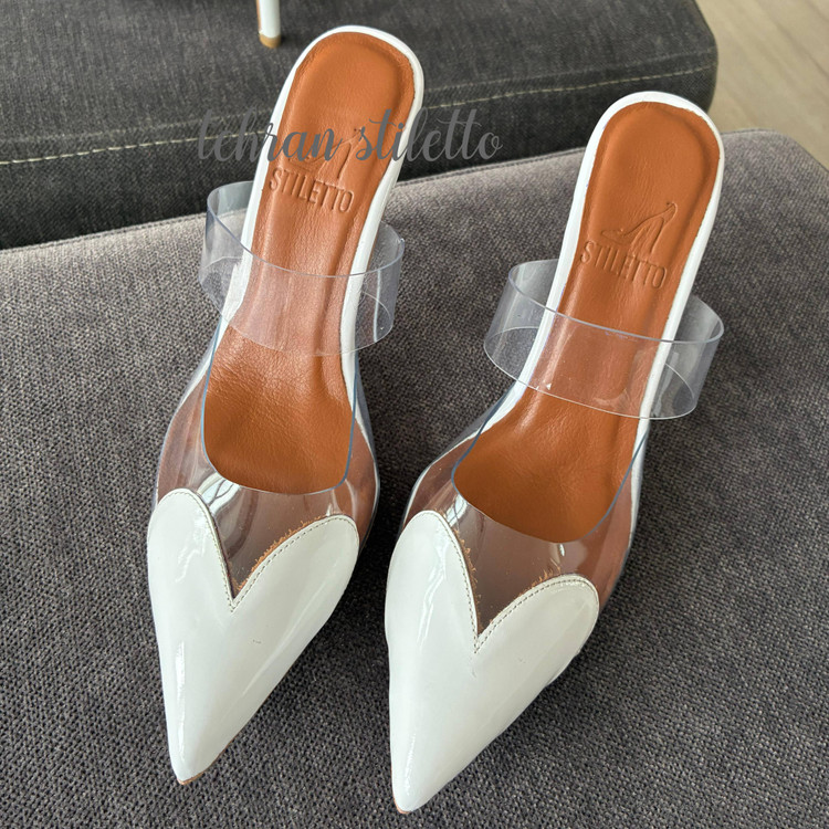 صندل مجلسی heart پاشنه دار نوک تیز سفید ورنی