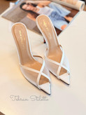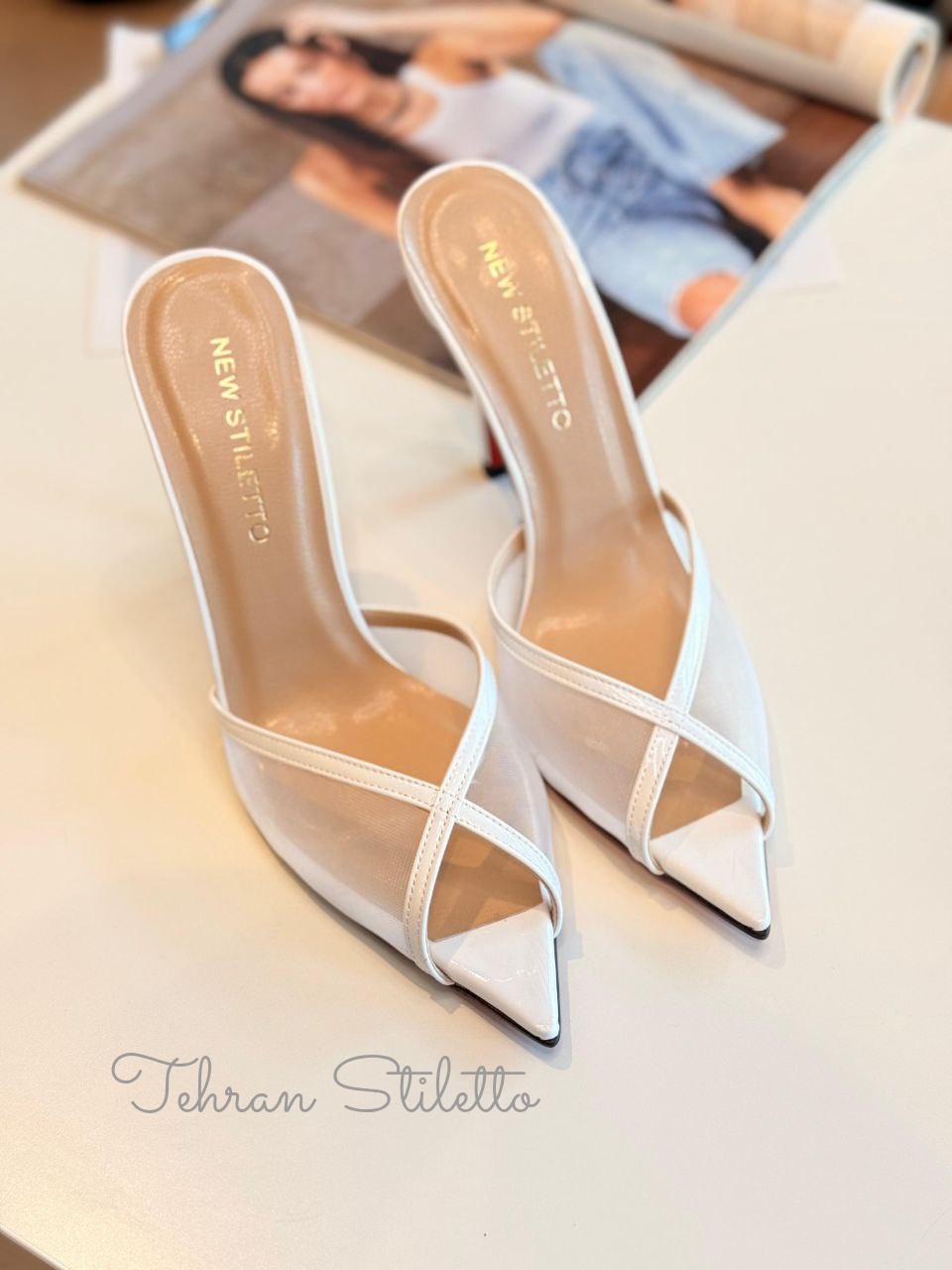 صندل مجلسی توری پاشنه دار نوک تیز سفید ورنی
