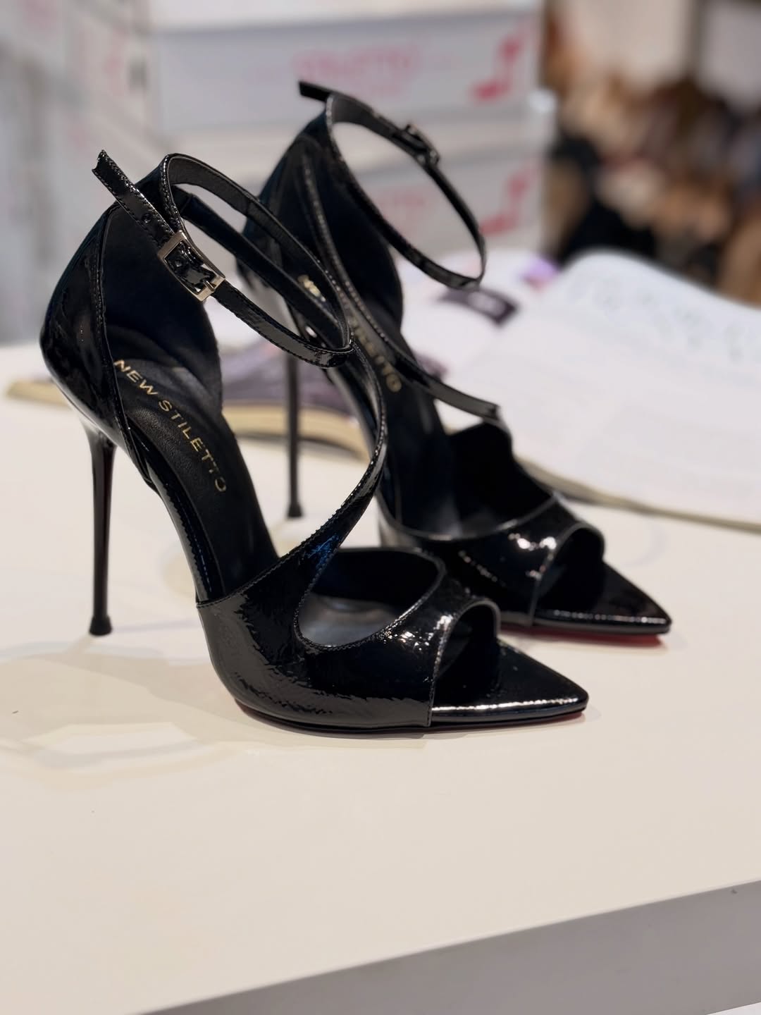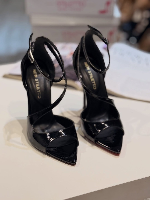 کفش مجلسی پاشنه بلند جلوباز مشکی ورنی