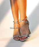 کفش پاشنه بلند مجلسی زنانه جلوباز نقره ای آیینه ای مدل bella