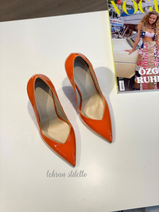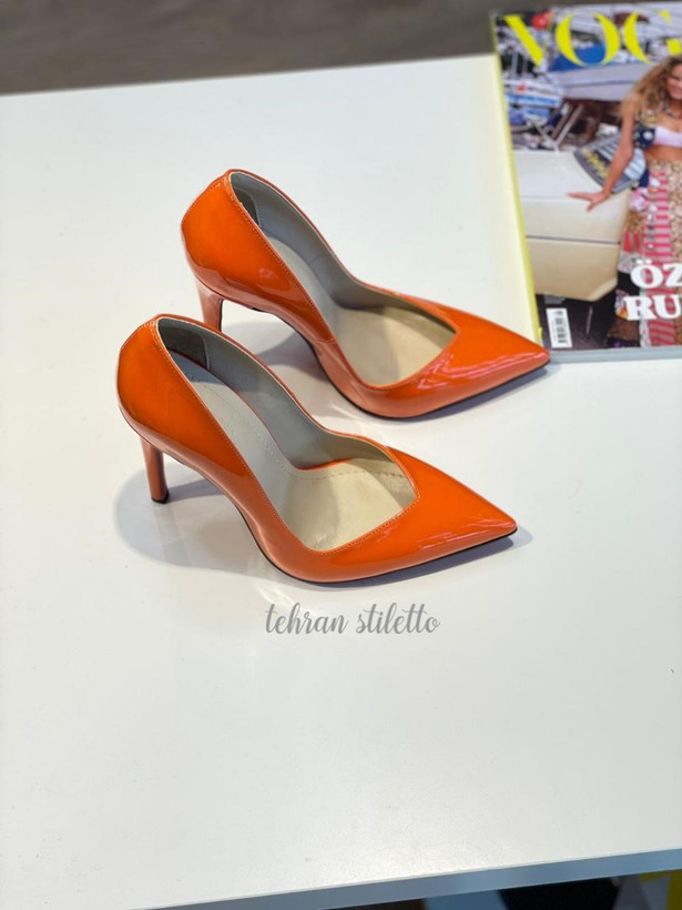 استلتو مجلسی زنانه دهنه هفت پاشنه بلند نوک تیز نارنجی ورنی