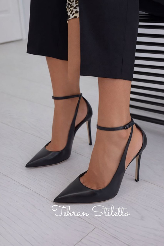 کفش پاشنه بلند مجلسی زنانه نوک تیز مشکی چرم
