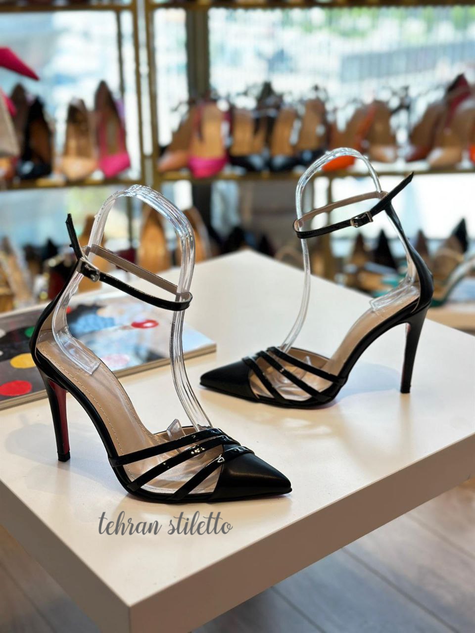 جنس محصول: ترکیب ورنی و چرم(کفش چرم هست و بندها ورنی ) / ارتفاع پاشنه: ۱۰ ٫ ۷ و ۵ سانتیمتر / قالب: استاندارد / رنگ زیره: قرمز