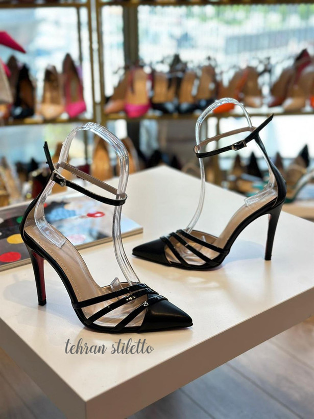 کفش مجلسی زنانه پاشنه دار دور مچ بنددار مشکی