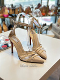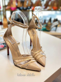 کفش مجلسی زنانه پاشنه دار دور مچ بنددار کرم