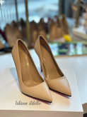 کفش مجلسی زنانه پاشنه بلند نوک تیز کلاسیک کرم چرم مات
