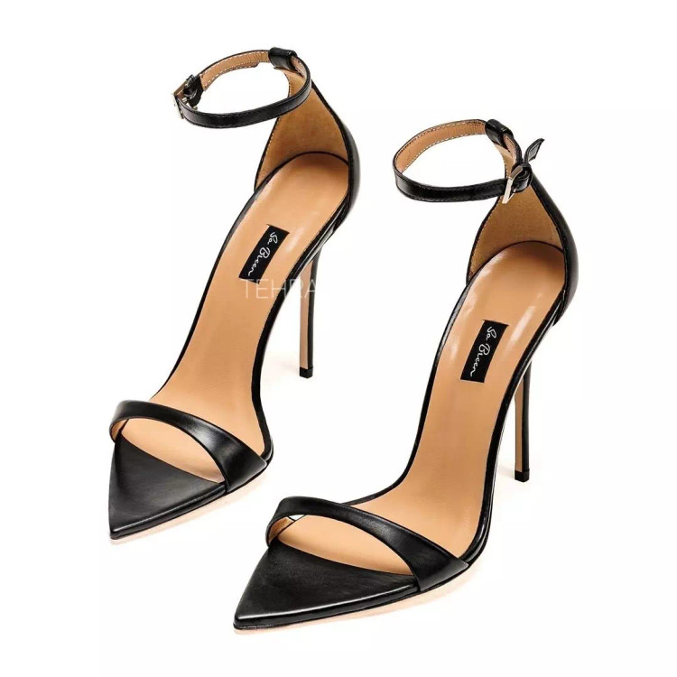 تکبند مجلسی زنانه پاشنه بلند دور مچ بنددار جلوباز مشکی چرم مات