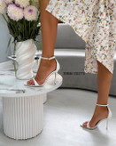 تکبند مجلسی زنانه پاشنه بلند دور مچ بنددار جلوباز سفید چرم
