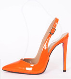 استلتو مجلسی زنانه پشت بنددار پاشنه دار نوک تیز نارنجی ورنی