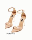 کفش مجلسی زنانه جلوباز پاشنه بلند نوک تیز دور مچ بنددار کرم ورنی