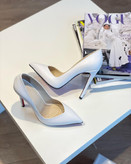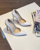 استلتو مجلسی زنانه دهنه هفت پاشنه بلند نوک تیز سفید چرم