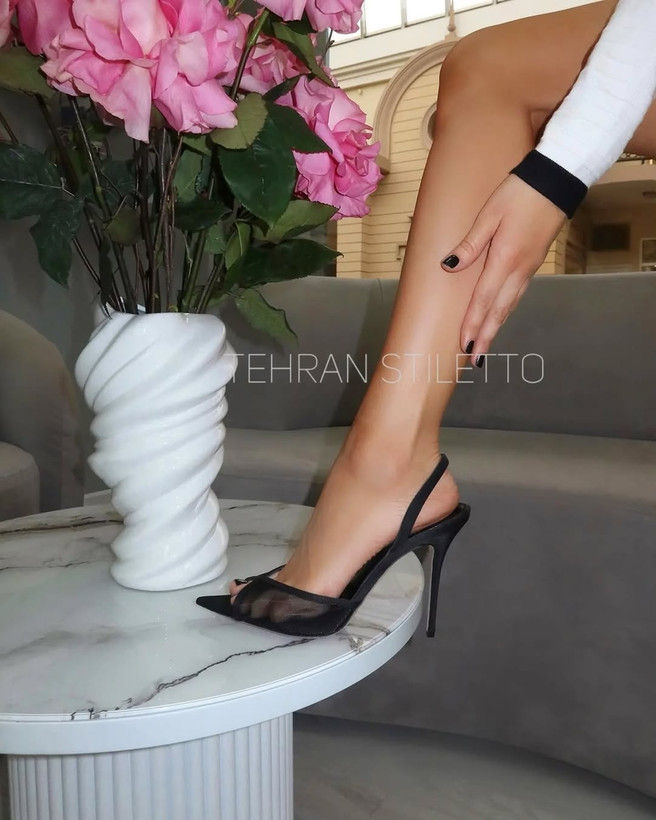 تکبند مجلسی زنانه توری پاشنه دار نوک تیز مشکی سوئیت