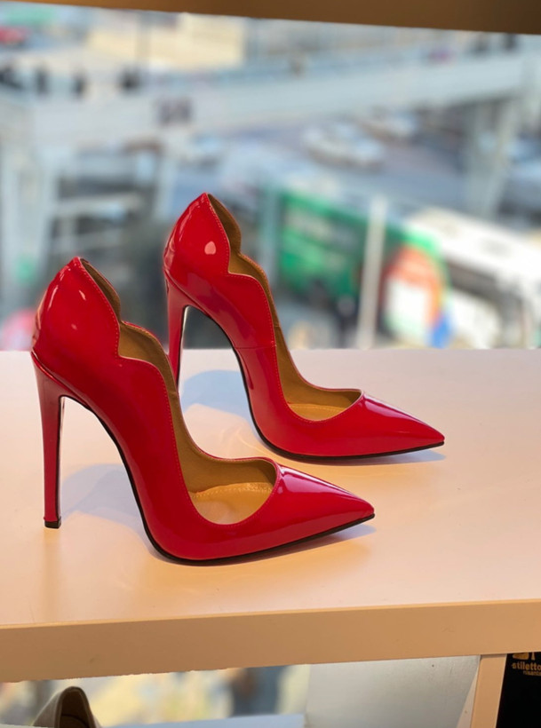 جنس محصول: ورنی/ ارتفاع پاشنه: ۱۰ ٫ ۷ و ۵ سانتیمتر / قالب: استاندارد / رنگ زیره : قرمز