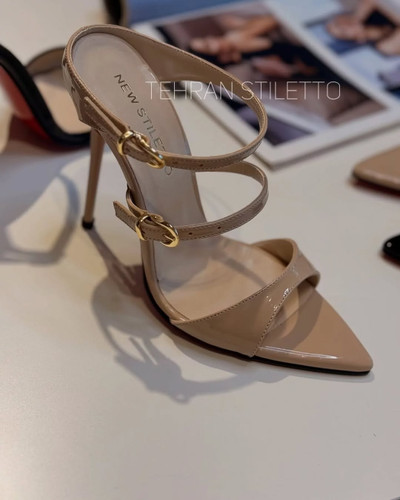 صندل مجلسی زنانه دوبند پاشنه بلند نوک تیز کرم ورنی