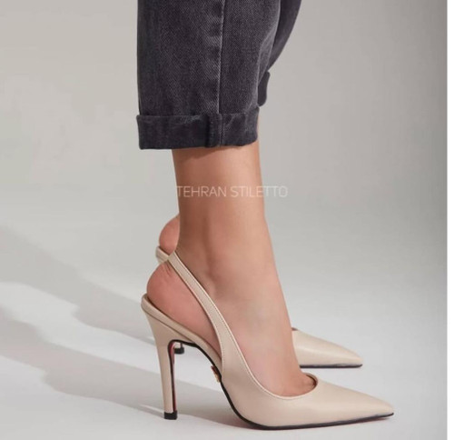 استلتو مجلسی زنانه پشت بنددار پاشنه دار نوک تیز کرم چرم