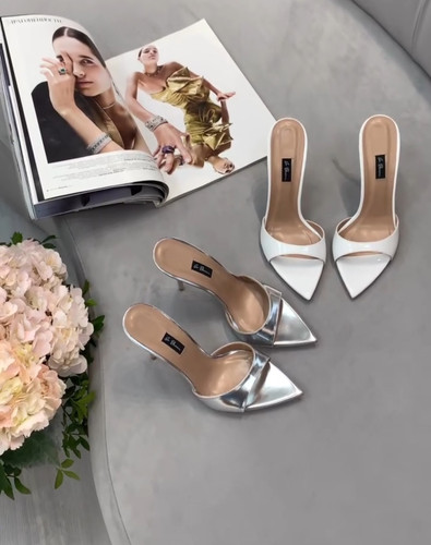 کفش مجلسی زنانه پاشنه بلند جلوباز نوک تیز نقره ای مدل vita