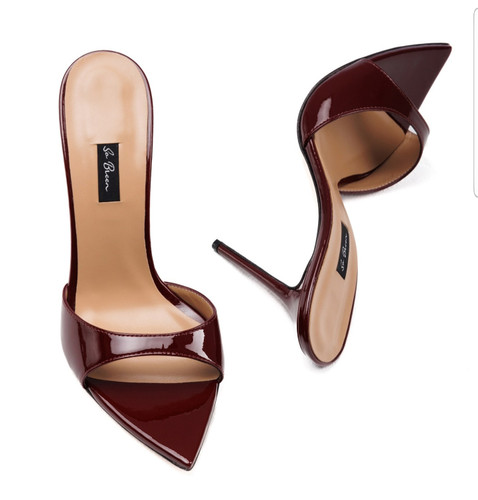 صندل مجلسی نوک تیز پاشنه بلند زرشکی ورنی