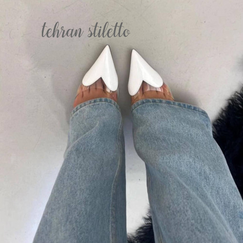 صندل مجلسی heart پاشنه دار نوک تیز سفید ورنی