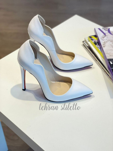 استلتو مجلسی زنانه شیشه ای پاشنه دار سفید ورنی