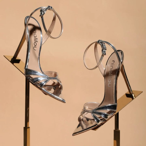 استلتو مجلسی زنانه پشت بنددار پاشنه دار نوک تیز نقره ای