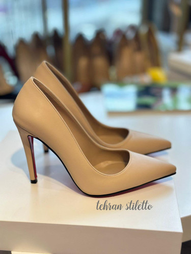 کفش مجلسی زنانه پاشنه بلند نوک تیز کلاسیک کرم چرم مات