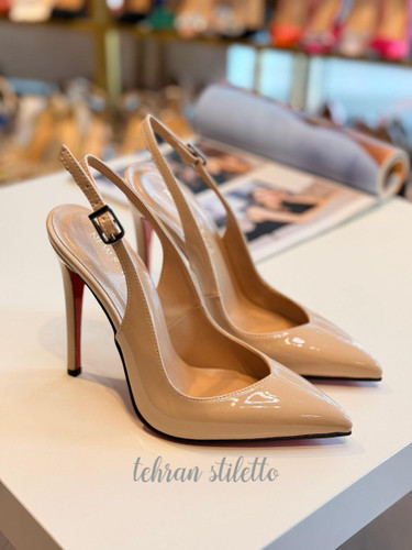 استلتو مجلسی زنانه پشت بنددار پاشنه دار نوک تیز کرم ورنی