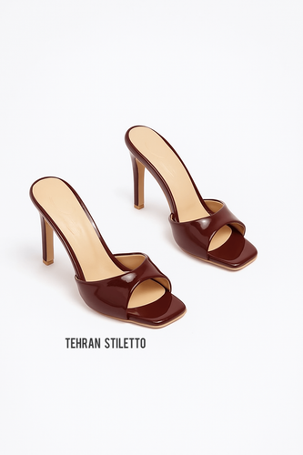 استلتو مجلسی زنانه پاشنه بلند نوک تیز مدل doll قهوه ای ورنی