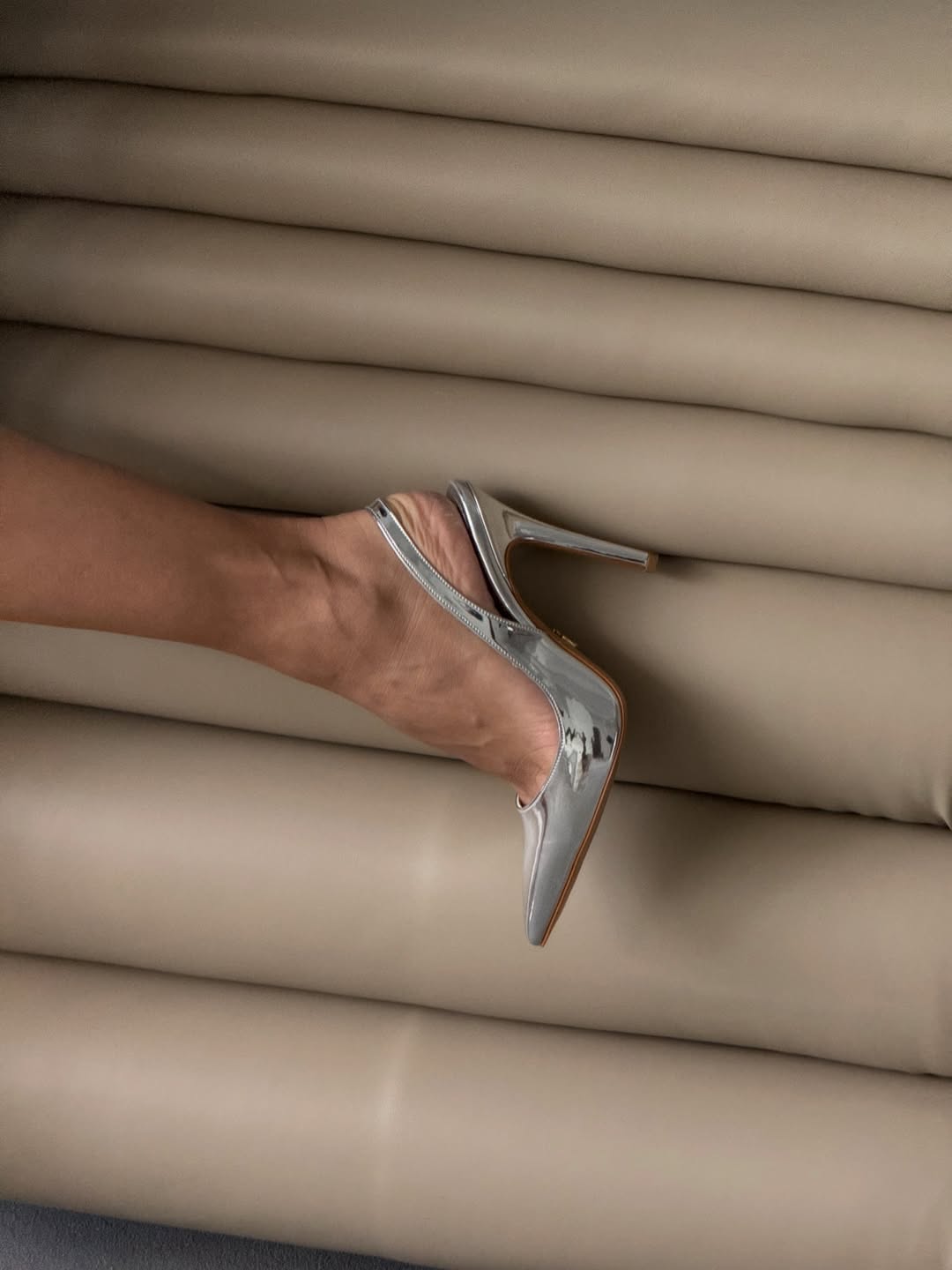 استلتو مجلسی زنانه پشت بنددار پاشنه دار نوک تیز نقره ای
