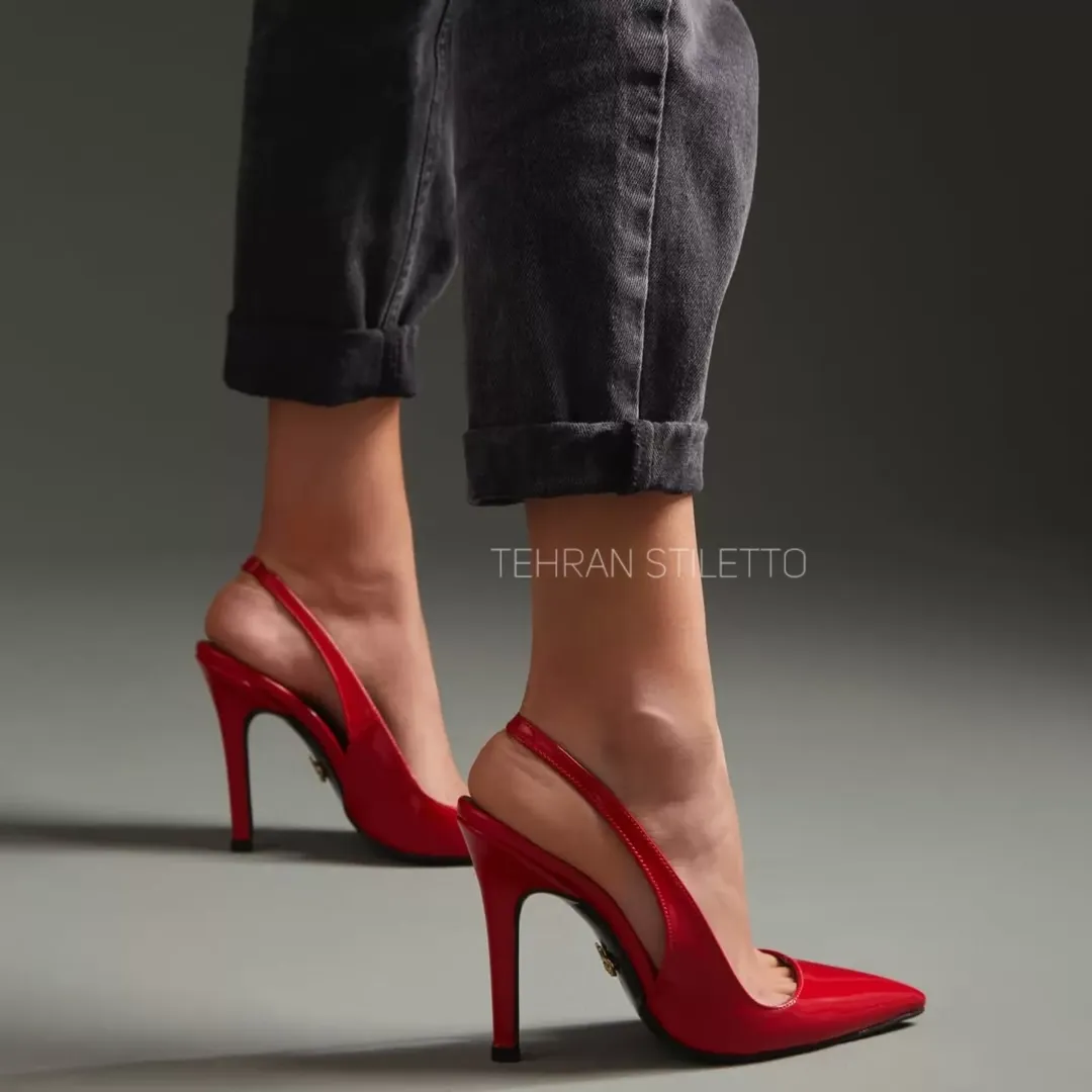 استلتو مجلسی زنانه پشت بنددار پاشنه دار نوک تیز قرمز ورنی